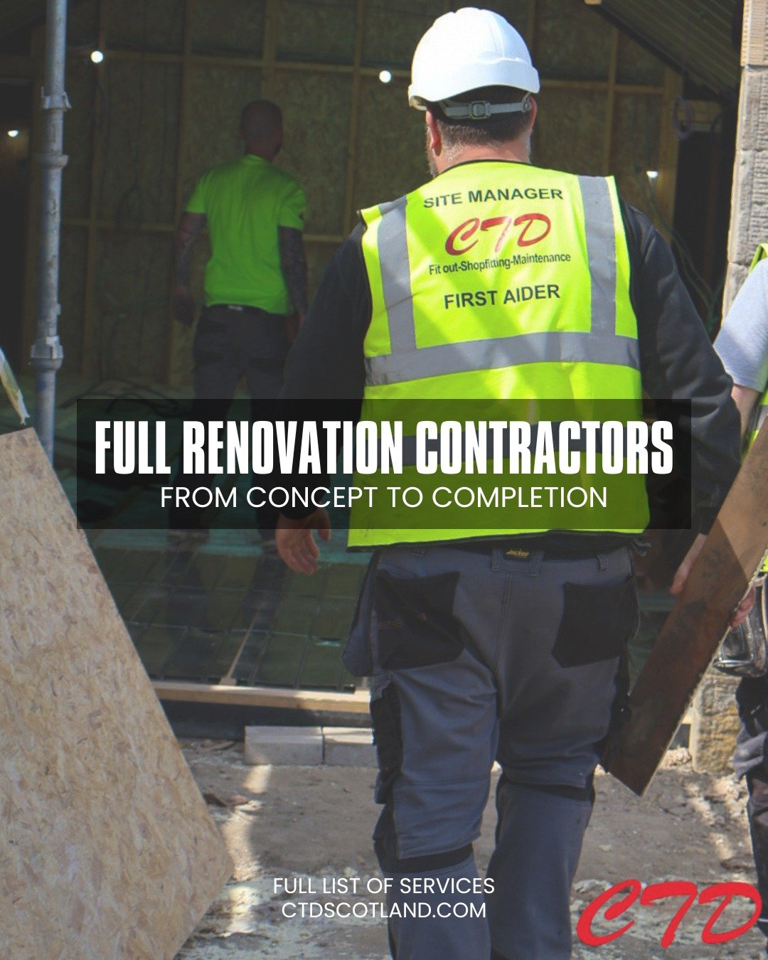 CTD offers a full-service fit-out team comprising skilled joiners, builders, electricians, plumbers, M&E (Mechanical and Electrical) experts, decorators, and other specialists.
